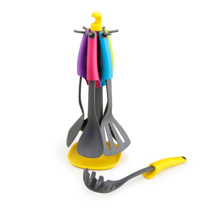 Generic - مجموعة ادوات مطبخ من 6 قطع مع حامل، ادوات طبخ ملونة من النايلون، قاعدة رمادية واصفر