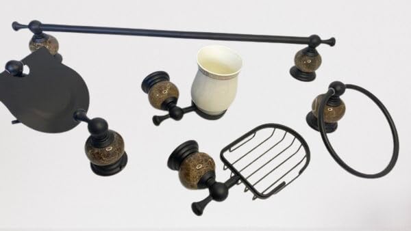 Generic - طقم اكسسوارات حمام بنمط رخامي مكون من 6 قطع بلون اسود