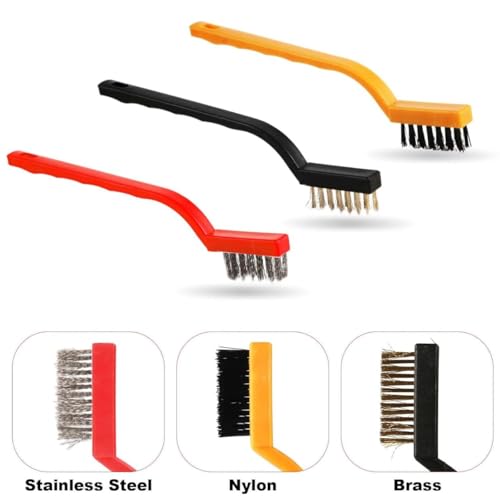 - فرشاة ستيل للتنظيف الشاق: للتنظيف العميق، الفرشاة الفولاذية مثالية للدهون القاسية والصدأ والأوساخ. مثالية لقطع غيار السيارات والأدوات وأي سطح يتطلب تنظيفًا قويًا.