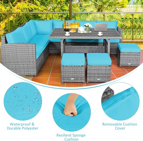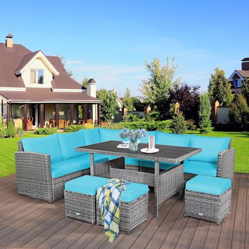 Generic - أثاث فناء خارجي مكوّن من 6 قطع، كنبة ركنية من الرتان المجدول بلون تركواز مع طاولة قهوة طقم جلسة خارجية مقاوم للعوامل الجوية للحديقة الخلفية مع مخدات