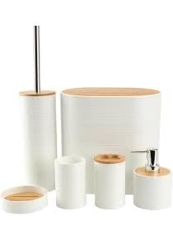 generic - طقم اكسسوارات حمام بيضاوي مكون من 6 قطع بتصميم عصري واغطية خشبية لتنظيم وتجميل الحمام (ابيض)