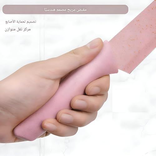 Generic - طقم سكاكين مطبخ احترافي 6 قطع بطلاء جرانيت، مضاد للصدأ وسهل التنظيف، يشمل سكين ساطور وسكين خبز وسكين فاكهة وسكين تقشير مع مقشرة سيراميك ومقص متعدد الاستخدام