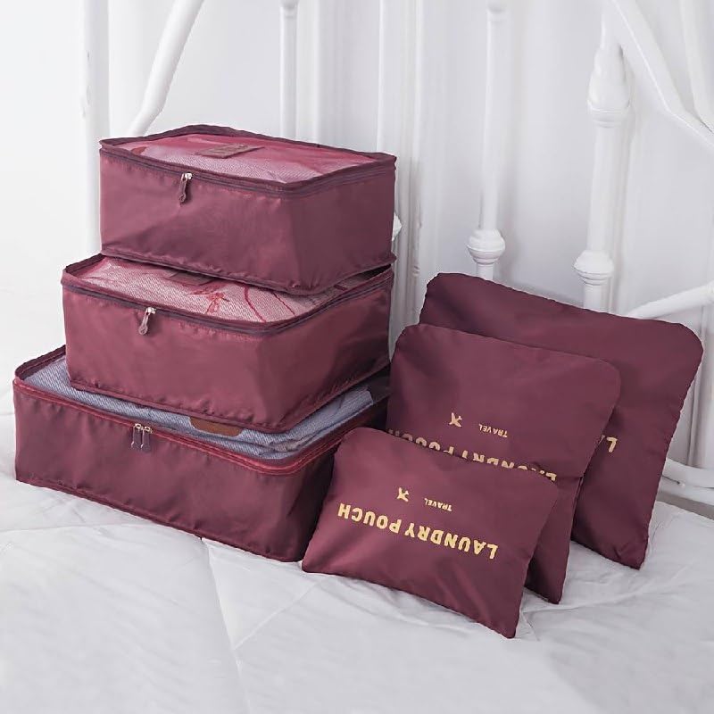 - نظام تنظيم متطور بـ 6 قطع متنوعة: يوفر لكِ هذا الطقم 6 أحجام مختلفة ومدروسة بعناية لتناسب تنظيم الملابس، الأحذية، وأدوات العناية الشخصية، مما يجعل عملية التعبئة أسرع وأكثر نظاماً.