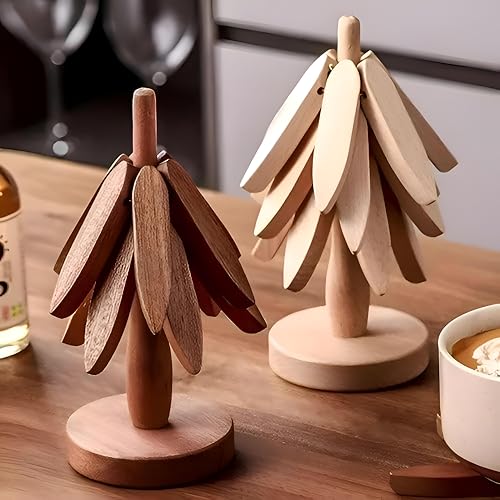 Generic - 6 قطع من قواعد الاكواب الخشبية مع قاعدة شجرة - قواعد اكواب معزولة مقاومة للحرارة للمقالي والاكواب والاوعية، ديكور انيق للطاولات العصرية (قطعتين)