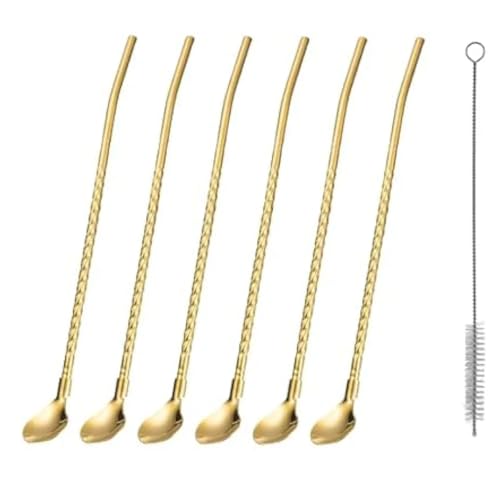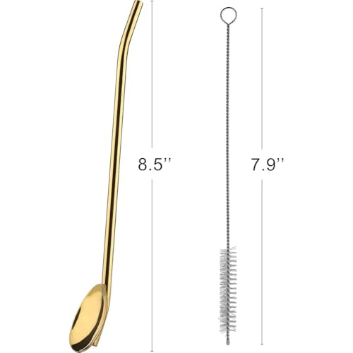 - تتضمن العبوة - 6 قطع من مصاصات الملاعق الذهبية المصنوعة من الفولاذ المقاوم للصدأ مقاس 8.6 بوصة/22 سم مع فرشاة تنظيف واحدة.