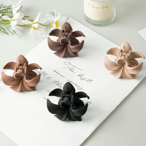 GENERIC - 6 قطع من مشابك الشعر على شكل زهرة للنساء لتثبيت قوي بالوان داكنة انيقة ومتينة وغير قابلة للانزلاق للاستخدام اليومي وتصفيفات شعر انيقة