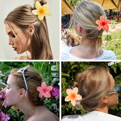 XYTAHDM - 6 قطع من مشابك الشعر على شكل زهور، مشابك شعر كبيرة غير قابلة للانزلاق للنساء، مشابك شعر هاواي، اكسسوارات شعر للبنات والنساء، مشابك شعر على شكل زهور للنساء