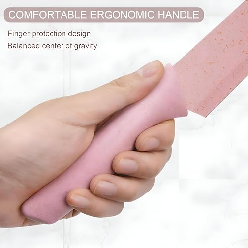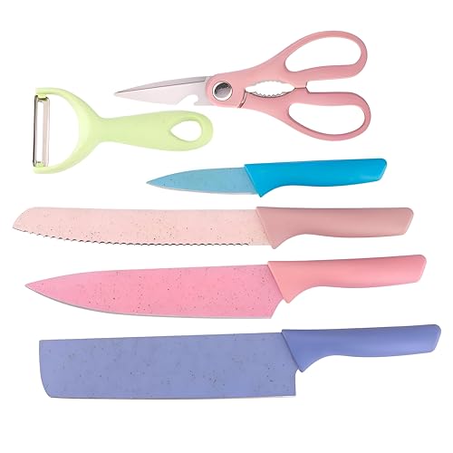 Generic - طقم سكاكين ستانلس ستيل بطلاء جرانيت 6 قطع، شفرات مموجة وحادة للغاية مضادة للخدش والصدأ، مثالي لتقطيع اللحوم والخبز والخضروات مع مقشرة سيراميك ومقص مطبخ