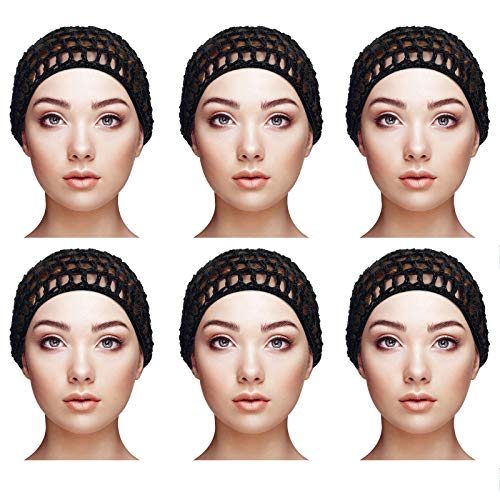 Geyoga - 6 قطع شبكة الكروشيه الشعر صافي عقال الكروشيه الشعر صافي قبعة رايون سنود قبعة سميكة قصيرة النساء غطاء شعر صافي سنود زخرفة للنوم (أسود)
