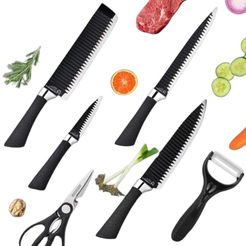 - 6 أدوات في طقم واحد: كل قطعة تم اختيارها بعناية لتوفر لكِ وظيفة محددة في التقطيع، التقشير، أو الفرم، علشان تشتغلي في المطبخ بأعلى كفاءة.