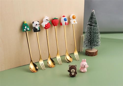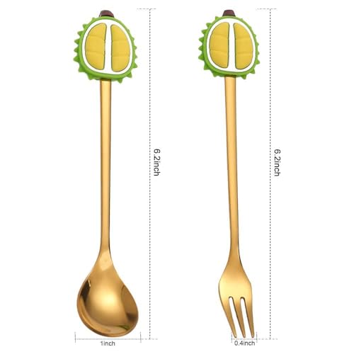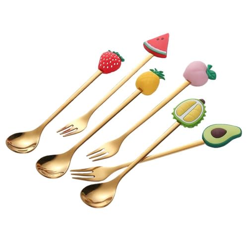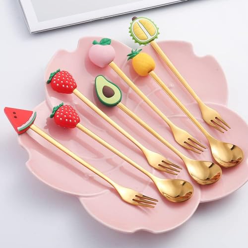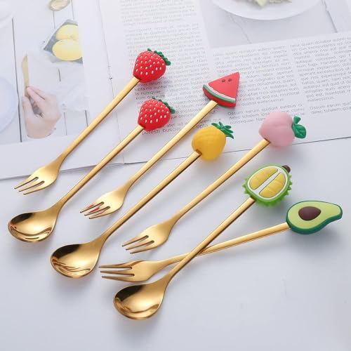 elyassin - ملعقة حلويات وشوكة لاحتساء القهوة وتناول الحلويات من الفولاذ المقاوم للصدأ، تتضمن 3 معالق بتصميم فاكهة لطيفة و3 شوكات من برايم شوب