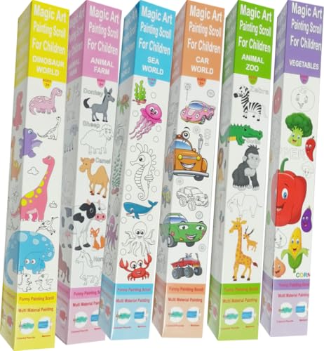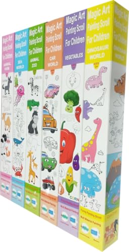 - 6 لفة ورق رسم للاطفال والكبار ، ورق فني بلون ابيض غير لامع كل لفة، 32 سم×300 سم، مثالية للرسم والحرف اليدوية وهدية لحفلات اعياد الميلاد (عالم البحار - حيوانات الغابة - عالم السيارات -حيوانات المزرعة -عالم الديناصورات -الخضروات)