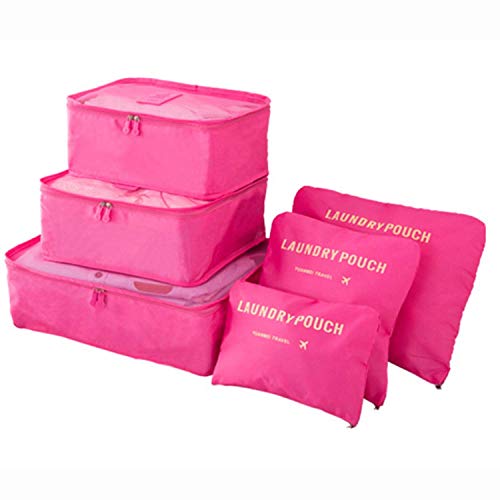 Spaceshoop - مجموعة من 6 شنط تخزين للسفر متعددة الوظائف لفرز الملابس وحزم الامتعة المنظمة بتصميم مكعبات، نايلون، احمر
