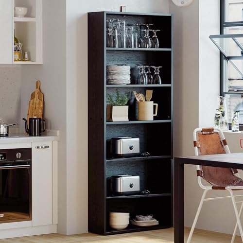 Chulovs - أرفف ودواليب كتب من 6 طبقات، أرفف تخزين قائمة على الأرض بارتفاع 1.8 م، أثاث منزلي للمكتب المنزلي وغرفة المعيشة وغرفة النوم، وحدة قائمة على الأرض، أسود عتيق