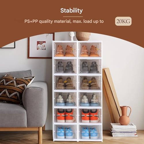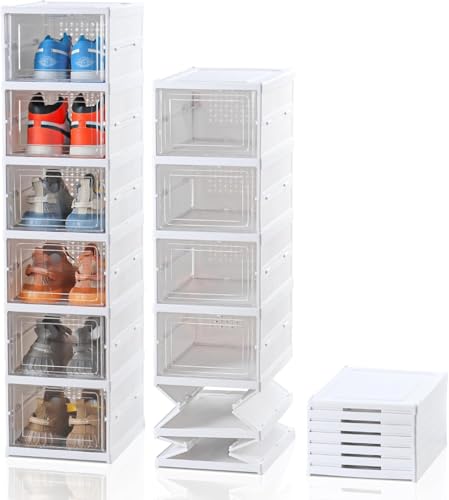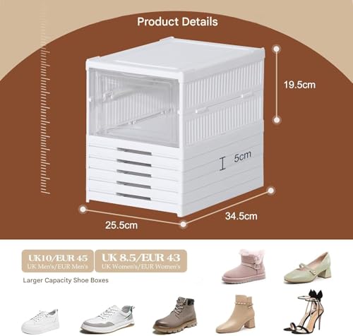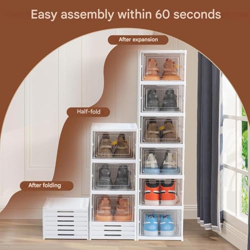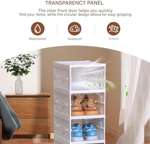 Plan A - منظم أحذية بلاستيكي قابل للطي بـ6 طبقات مع باب أمامي شفاف، صندوق تخزين للأحذية قابل للتكديس والطي، تصميم أنيق ومتين لتوفير المساحة في الخزانة أو المدخل، سهل الاستخدام ولا يحتاج لتركيب