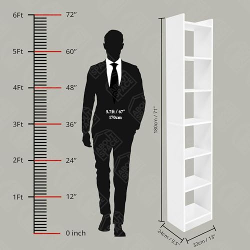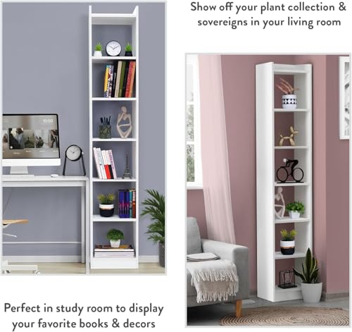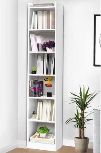Generic - رف كتب عمودي من الخشب من 6 طبقات، حامل مكعب طويل متعدد الأغراض للمكتبة المنزلية والمكتب وغرفة النوم بطبقة خارجية نظيفة من الخشب الصناعي، لون أبيض