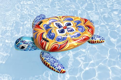 - تصميم خزفي إيطالي مطلي بألوان زاهية فريد: تصميم سلحفاة البحر المتوسط يمنح الحيوان العائم لمسة جمالية خاصة وجذابة. يشعر الأطفال والكبار على حد سواء بالحماسة، ويتم تحسين كل حفلة في حمام السباحة بصريًا.