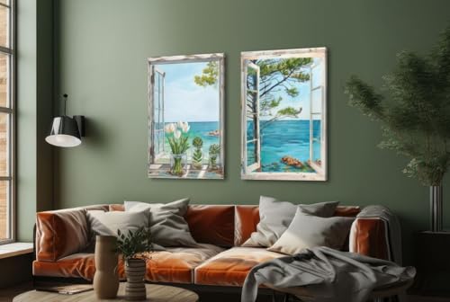 سفير آرت - تابلوهات حائط نوافذ على البحر مقاس 60×85 سم ( طباعه على كانفاس – تابلوه مودرن ) من سفير آرت SAL6-M