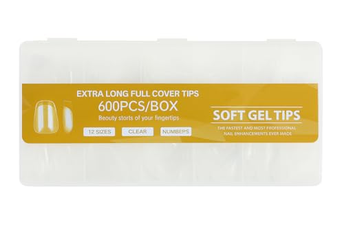 SNS SECRET NAILS SYSTEM - 600 قطعة من اطراف اظافر جل ناعمة بتغطية كاملة - 12 مقاسًا لاظافر صناعية شفافة مع ارقام - صندوق اعادة تعبئة احترافي لوصلات الاظافر وفن الاظافر بنفسك وصالونات التجميل والمانيكير المنزلي (مربع (راقصة