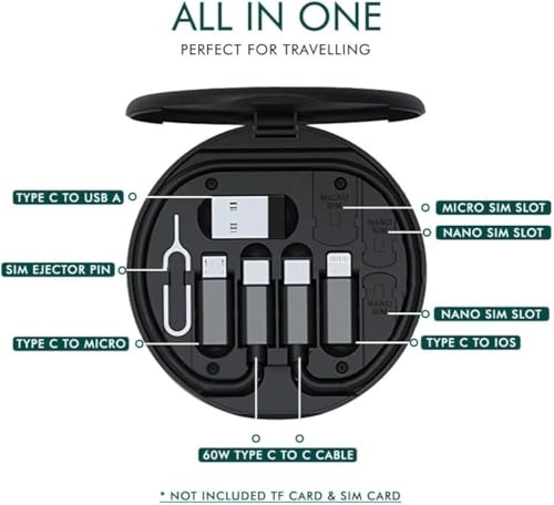 Generic - مجموعة كيبل بيانات للشحن السريع بقدرة 60 واط مع اداة دبوس | تحويل كيبل USB-A الى USB-C | امن لحمل شريحة الاتصال الخاصة بك | مخرج 3 امبير كحد اقصى | كابل نقل البيانات | اسود