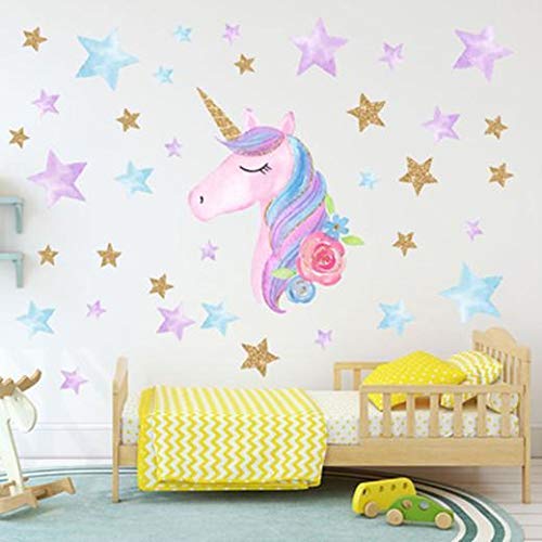 Generic - ملصق جداري لغرفة الأطفال بتصميم يونيكورن مميز مناسب لغرف الأولاد والبنات ويضفي لمسة جمالية على ديكور الحضانة أو غرفة النوم، قابل للتخصيص باسم الطفل، 60 × 36 سم