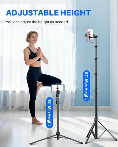 - 【عمود تلسكوبي 62 انش】6 قضبان تلسكوبية للحامل ثلاثي القوائم لموبايل ايفون مصنوعة من مادة سبائك الألومنيوم، وهي خفيفة الوزن ومقاومة للتآكل ومتينة. يمكن تعديل حامل ايفون ثلاثي القوائم إلى ارتفاع 17-62 انش ويمكنه التقاط مجموعة متنوعة من الارتفاعات والزوايا، مما يوفر لك مجال رؤية أوسع لتلبية احتياجاتك في المناسبات المختلفة. مقاس الحمل 11.8 انش فقط.