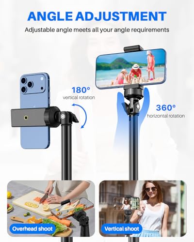 - 【جهاز تحكم عن بعد لاسلكي قابل للفصل】عصا سيلفي ثلاثية القوائم مع جهاز تحكم عن بعد لاسلكي، مسافة تحكم لاسلكية تصل إلى 33 قدم، متوافقة مع إصدارات IOS 5.0 واندرويد 4.3 والإصدارات الأحدث، اقتران سريع، تشغيل بسيط للغاية. عندما لا يكون جهاز التحكم عن بعد قيد الاستخدام، يمكن وضعه في فتحة جهاز التحكم عن بعد المخصصة على عصا السيلفي لتجنب فقدانه. يمكن تدوير حامل ايفون ثلاثي القوائم عموديًا بمقدار 120 درجة وأفقيًا بمقدار 360 درجة، مما يدعم كلا الوضعين الرأسي والأفقي، بالإضافة إلى وضع الانبطاح.