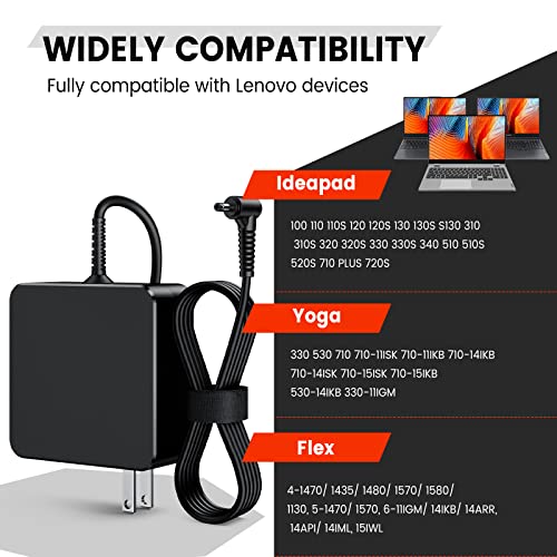 Sheivulo - شاحن لاب توب 65 وات/45 وات متوافق مع لينوفو ايديا باد 3 5 330، شاحن كمبيوتر يوجا، محول تيار متردد بطرف دائري متوافق مع موديلات 130-15AST 130-15IKB 330S 110S 320 330 310-15ISK وفليكس 4 5 1480 1580