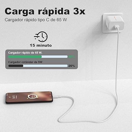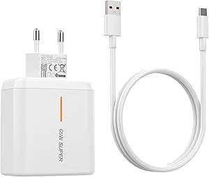 - قدرة الشحن: شاحن سريع بقوة 65 واط يوفر شحناً فائق السرعة لهواتفك المتوافقة
