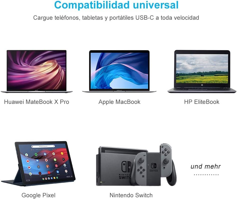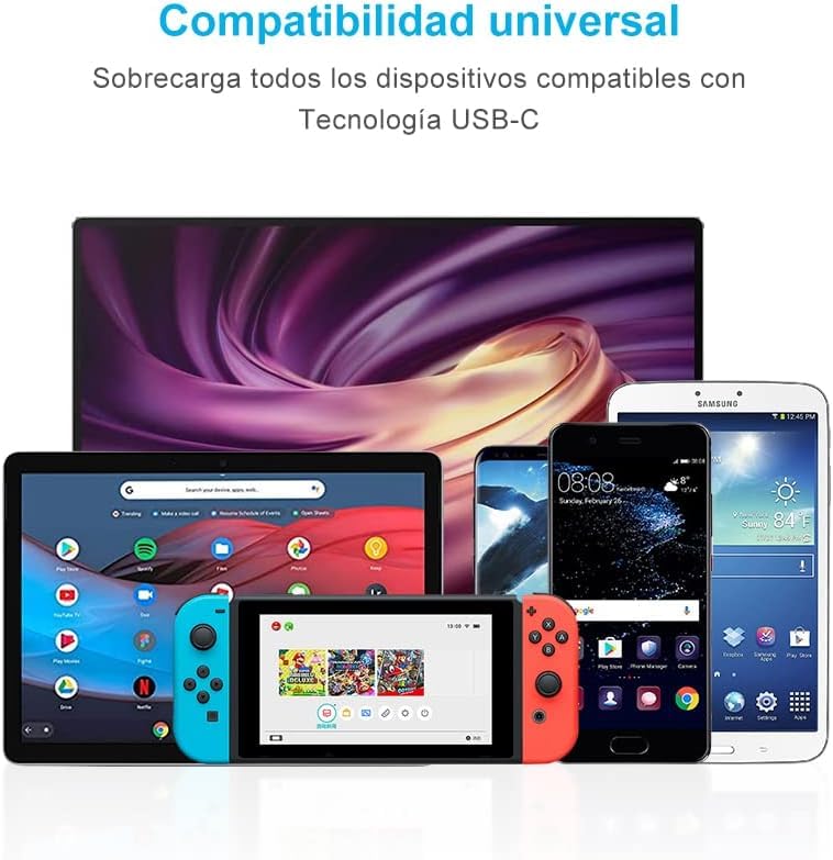 - توافق عالمي: يعمل بسلاسة مع مجموعة واسعة من الأجهزة التي تدعم USB نوع سي بما في ذلك أجهزة اللاب توب الحديثة وأجهزة التابلت والموبايلات الذكية المزودة بمنافذ شحن من النوع سي.