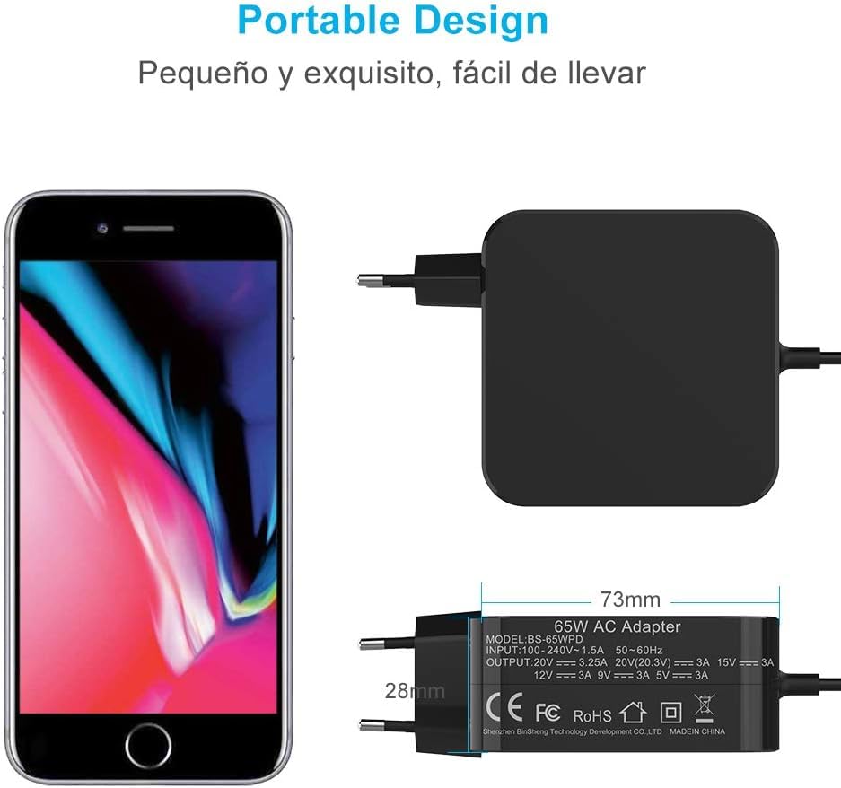 - شحن سريع جدًا: يوفر محول الطاقة USB نوع سي بقدرة 65W شحنًا سريعًا وفعالًا لأجهزة اللاب توب والنوت بوك وغيرها من الأجهزة المتوافقة مع نوع سي.