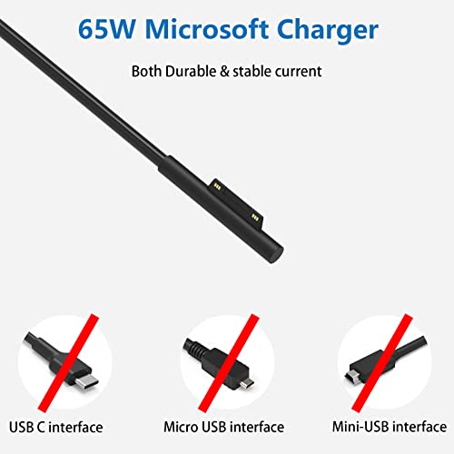 HOUTQPLE - شاحن بديل سيرفس برو 65 وات لسيرفس برو 9 8 3 7 6 5 4 X متوافق مع لابتوب مايكروسوفت سيرفس 1 2 3 سيرفس جو جو 2 جو 3 سيرفس بوك 1 2 سيرفس، محول كهربائي للشاحن