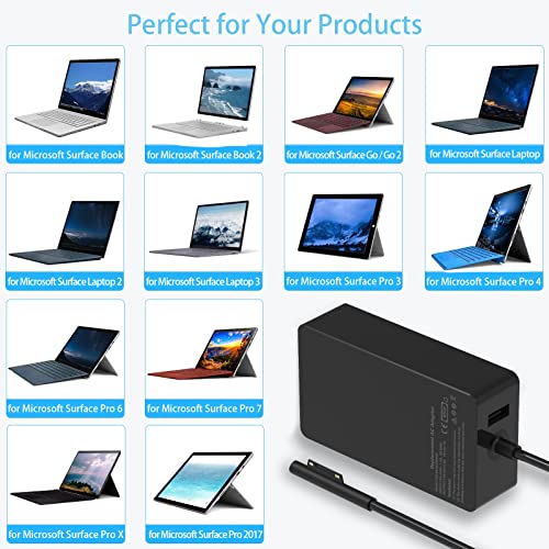 - شاحن مصمم ليناسب أجهزة مايكروسوفت سيرفس برو 3، سيرفس برو 4، سيرفس برو 5، سيرفس برو 6، سيرفس برو 7، سيرفس برو 8، سيرفس برو X.
