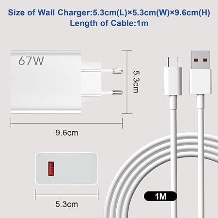 Generic - محول طاقة سريع 67 واط مع كابل بيانات نوع سي، 1 متر، لريدمي نوت 13 برو 12 برو 11 برو، شاحن تيربو لشاومي 14 13T 13 برو 13 12 لايت 12X ريدمي نوت 12 12S 11S بوكو X6 برو X6 برو X6