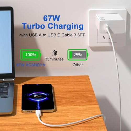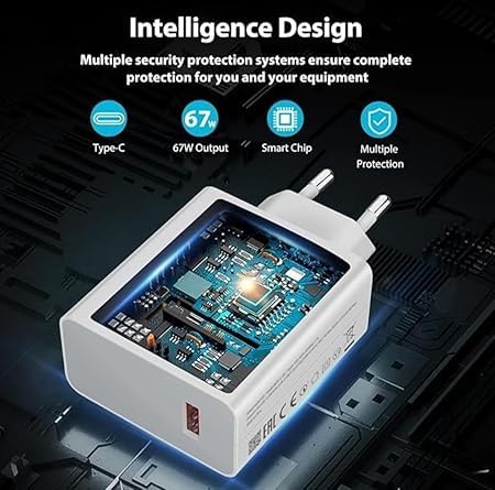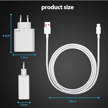 - شاحن مع كابل يو اس بي نوع سي مصمم وفقًا لمعايير الصناعة السائدة، فهو يحقق درجات عالية في جانب المنفعة. المادة عالية الجودة المستخدمة في هيكلها تجعلها متينة. حل الطاقة المثالي لجميع أجهزتك المحمولة. مصمم لتوفير شحن سريع وكفاءة لا مثيل لها، يضمن هذا الشاحن أن تكون أجهزتك جاهزة دائمًا عندما تكون كذلك. كابل USB C بطول 1 متر وصغير الحجم: الشاحن السريع بقدرة 67 واط مع كابل USB نوع سي متين وطويل بما يكفي للوصول إلى أي مكان. الشاحن السريع 67 واط صغير الحجم وخفيف الوزن في التصميم والتوافق مناسب لحمله معك في أي مكان.
