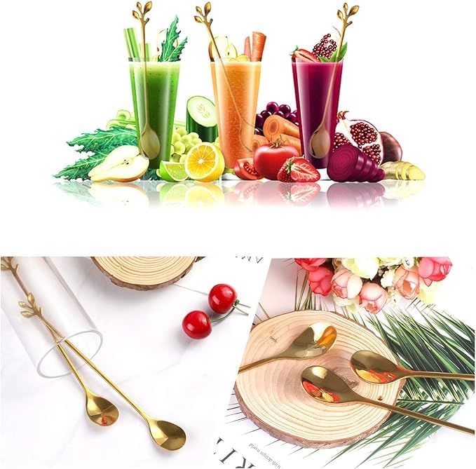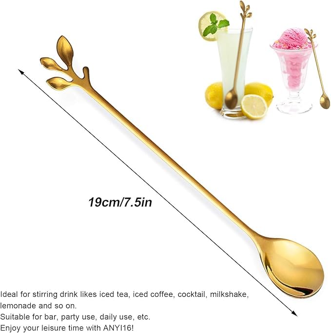 - 【العبوة والمقاس】: 3 قطع ملاعق شاي مثلج بورق ذهبي، بطول 19.05 سم، الحجم الطويل مثالي.