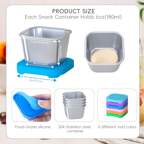 Dayacoco - علب تخزين طعام من داياكوكو، مصنوعة من الستانلس ستيل والسيليكون، مجموعة من 6 قطع، سعة 180 مل