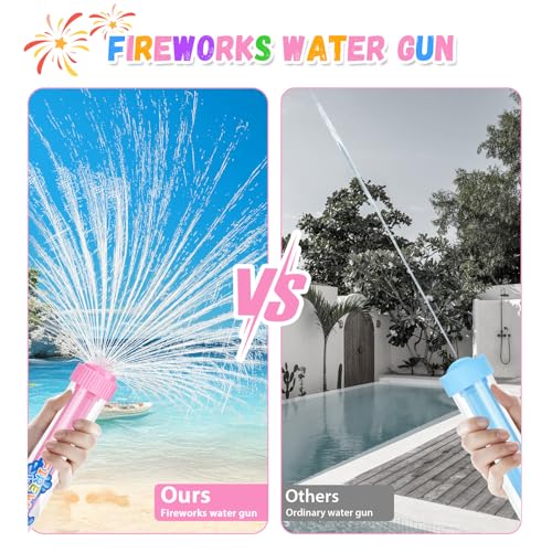 - 【Coolest Summer Gift for All Ages】 The small fireworks water gun ideal for pools, gardens, patios, beaches, or any outdoor activities. A fantastic summer gift, birthday present, or Children’s Day surprise for boys, girls, and even adults. Make weekends unforgettable with the ultimate water toy
