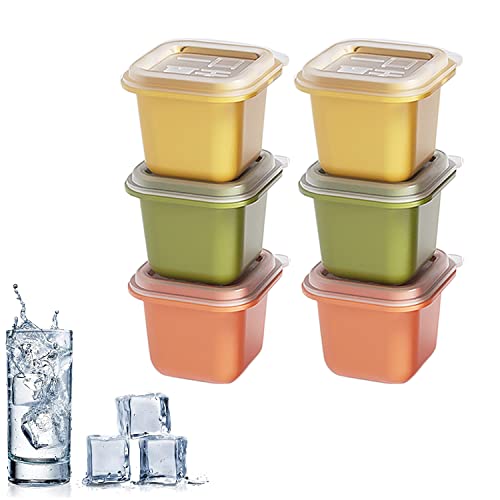 rulebey - مجموعة قوالب مكعبات الثلج من 6 قطع، صندوق ثلج مربع مفرد، قالب سريع التجميد وسهل التحرير، صندوق تخزين ثلج مع غطاء، صينية مكعبات ثلج ملونة