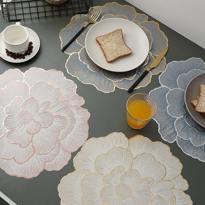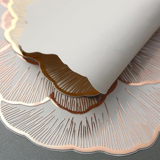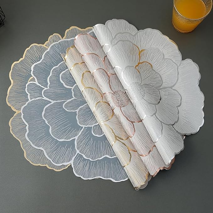 - جودة المواد: مصنوعة من بلاستيك PVC الفاخر، هذه المفارش المستديرة مقاومة للحرارة ومقاومة للماء وغير قابلة للانزلاق مما يوفر المتانة للاستخدام اليومي والمناسبات الخاصة.