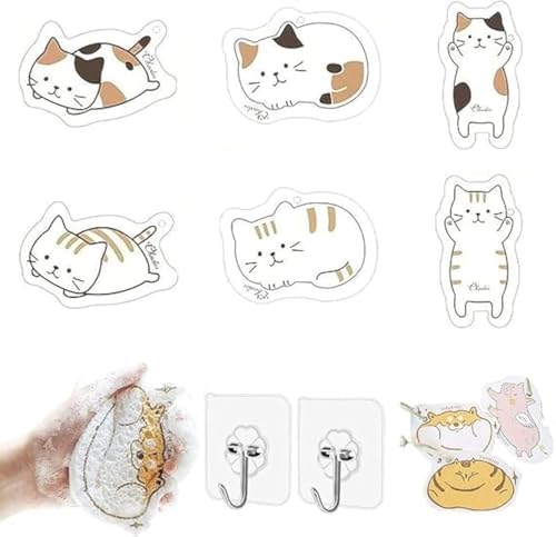 Generic - إسفنجات تنظيف من لب الخشب المضغوط، إسفنجة تنظيف مزدوجة الجوانب بنقشات كرتونية، إسفنجات تنظيف قابلة لإعادة الاستخدام، أدوات تنظيف المطبخ (A)، عبوة من 6 قطع