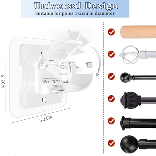 - 【6 قطع من دعامات قضيب الستائر】ستحصل على 6 قطع من حوامل دعامات الستائر بدون ثقب. لاصق قوي للغاية ومتين، سيلتصق جيدًا بعد الاستخدام المكثف. مناسب لقضبان الستائر أو قضبان المناشف بقطر 1 سم.