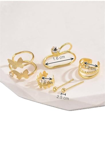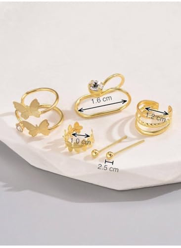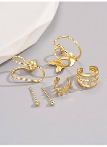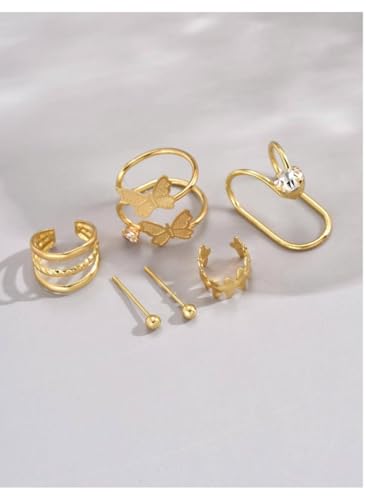 Generic - 6 قطع اقراط بمشبك مرصعة بالزركونيا الرقيقة للنساء، ذهبي اصفر، نحاس، حجر الراين، نمط شخصي عصري، مثالية للمواعيد والحفلات والارتداء اليومي