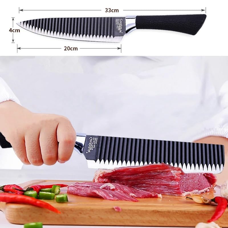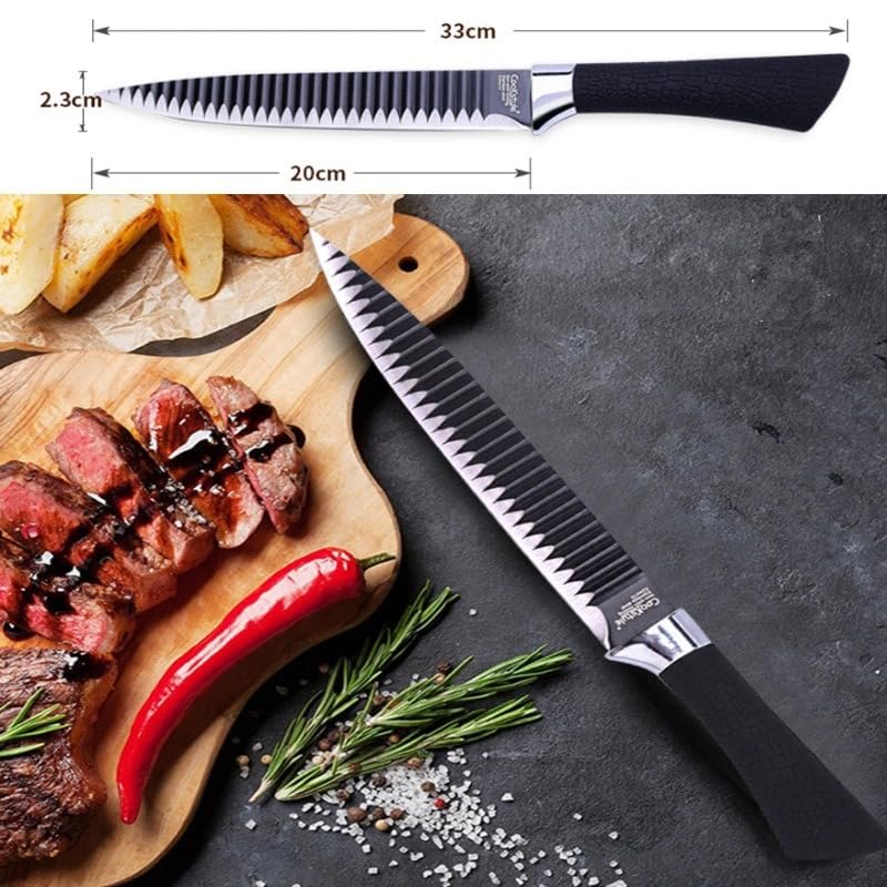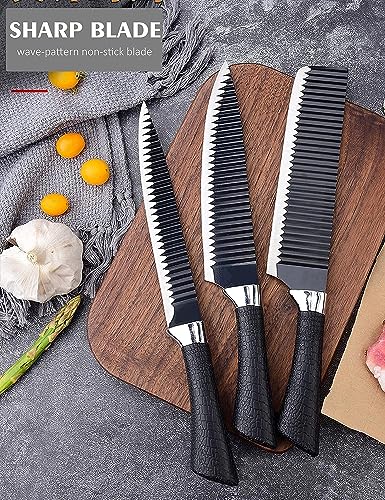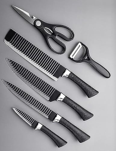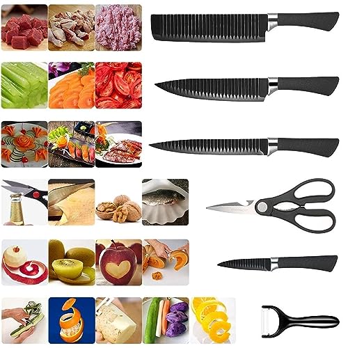 Generic - سكاكين مطبخ مقاومة للالتصاق خفيفة الوزن بتصميم مموج مع مقبض مريح تتضمن سكين شيف وسكين شرائح وقطاعة شرائح رفيعة وسكين تقشير ومقشرة للخضراوات وزوج من المقصات - 6 قطع