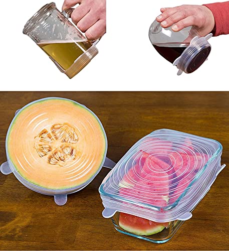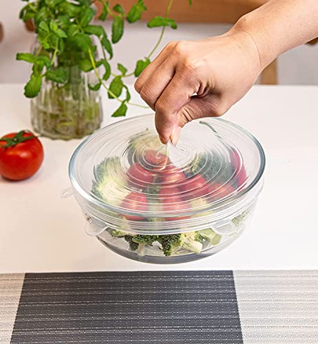 Generic - طقم اغطية سيليكون دائرية محكمة الغلق ومرنة لحفظ الطعام، 6 قطع - ابيض