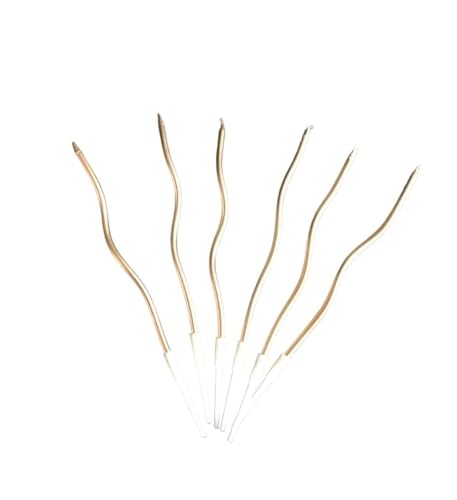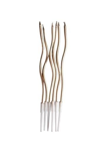 - مجموعة شموع عيد الميلاد الملتوية من 6 قطع، شموع معدنية مجعدة مع حوامل شموع ابداعية للكب كيك والكب كيك، شموع طويلة ورفيعة لحفلات الزفاف واعياد الميلاد للاطفال، لتزيين الكيك (ذهبي فاتح)