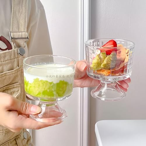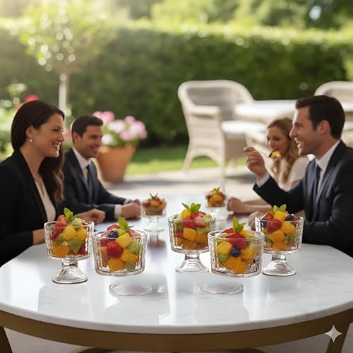 Generic - - طقم كاسات زجاجية شفافة مثالية لتقديم بودنغ الأرز والآيس كريم لإضفاء لمسة من الأناقة إلى أي طاولة لضيوفك، طقم مكون من 6 قطع