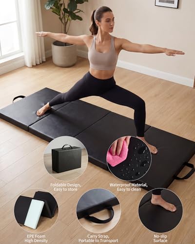 MilleLoom - بساط جمباز قابل للطي مقاس 6 × 3 قدم، وسادة سميكة 2 انش لجميع الاغراض، بساط للتمارين الرياضية مع سطح من الفينيل ومقابض حمل للقفز واليوغا والبيلاتس والتمارين المنزلية وفنون الدفاع عن النفس