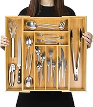 Generic - منظم درج معالق خشب بامبو 🪵 حامل أدوات مائدة للدرج شوك و سكاكين خشبي🍴 7 خانة سهله التنظيف الحجم الكبير