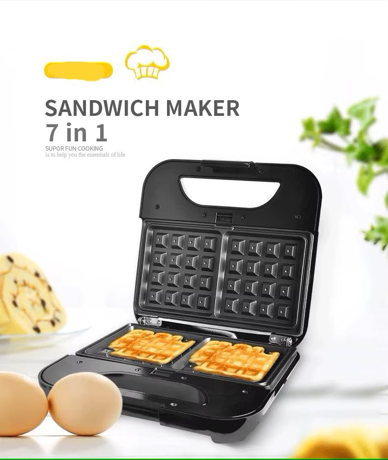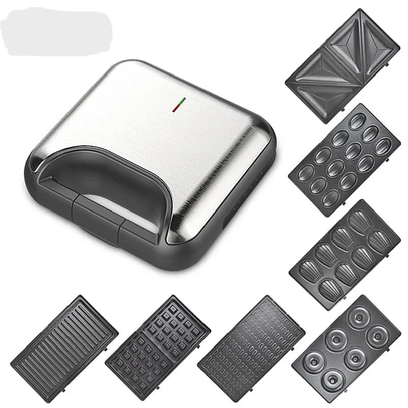 Generic - ماكينة صنع الساندويتشات 7 في 1 مع ألواح قابلة للتغيير وماكينة تحميص الإفطار والشواية وماكينة صنع الدونات والوافل وماكينة صنع الساندويتشات 800 وات عمليه جدا متعدده الاستخدام ضمان عام